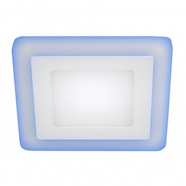 Встраиваемый квадратный LED светильник Даунлайт Эра с синей подсветкой по периметру, 230 Вольт мощностью 9 Ватт/3 Ватт, нейтральный белый свет. Б0017496