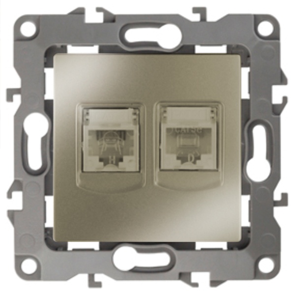 Механизм слаботочной розетки с двумя разъемами Rj11/RJ45, скрытой установки в сухих помещениях, цвет лицевой панели шампань, Эра 12. Б0018251