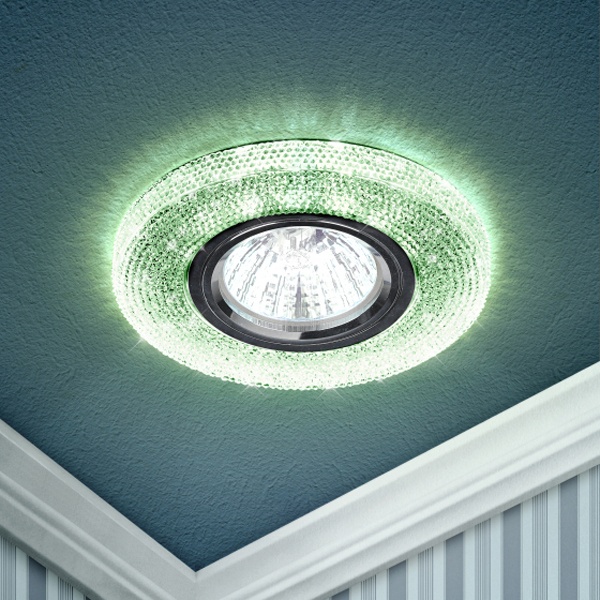 Встраиваемый точечный светильник Эра зеленого цвета со светодиодной подсветкой 12 Вольт, цоколем GU5.3 Б0018777