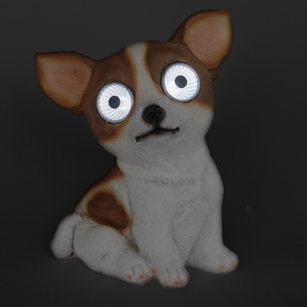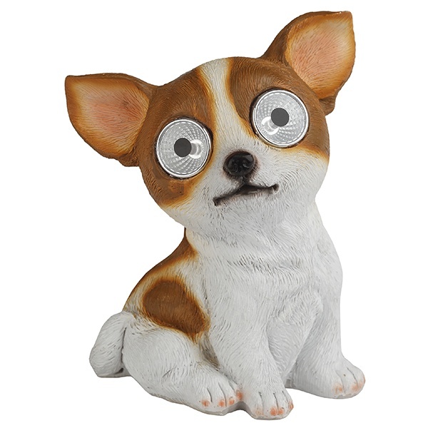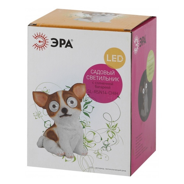 Оригинальный садово-парковый светильник на солнечной батарее производителя ERA серии SL поможет эффектно оформить зоны отдыха и приусадебные участки загородных домов. Он выполнен в виде фигуры собачки чихуахуа с горящими глазами высотой 14 см. В дневное время светильник служит прекрасным украшением, оживляет пейзаж. Ночью он является декоративной подсветкой кустарника, газона, альпийской горки. Материал корпуса фигурки – полистоун, в качестве источника света применяются несменные встроенные светодиодные лампы. Устройство работает от аккумулятора 1xAAA NI–CD, потребляемая мощность – 1 Ватт. Степень защиты устройства – IP44, диапазон рабочих температур от – 45 до + 45 градусов Цельсия. Светильник имеет длительный срок службы, он обладает влагозащищенным корпусом и рассчитан для применения на улице. Перед использованием фигурки её необходимо включить и зарядить. Светильник заряжается в течение всего светового дня. Вес изделия – 0,38 кг. Гарантийный срок – 6 месяцев. Срок службы – 2 года.