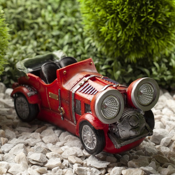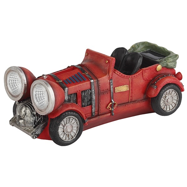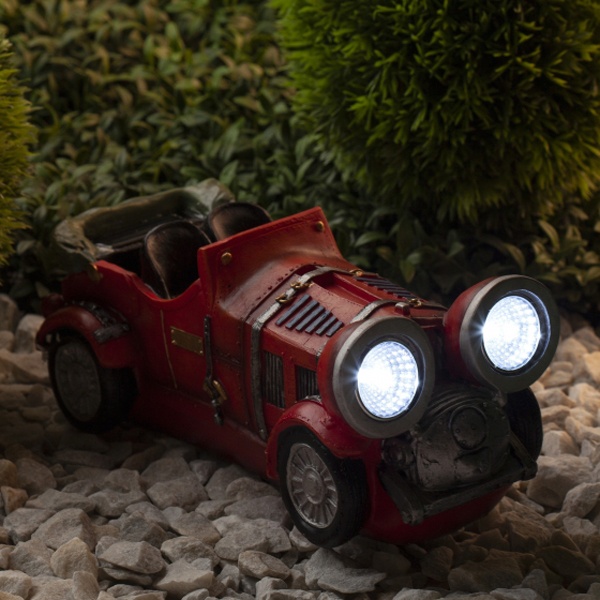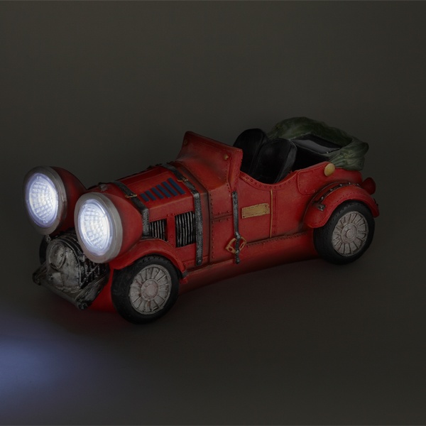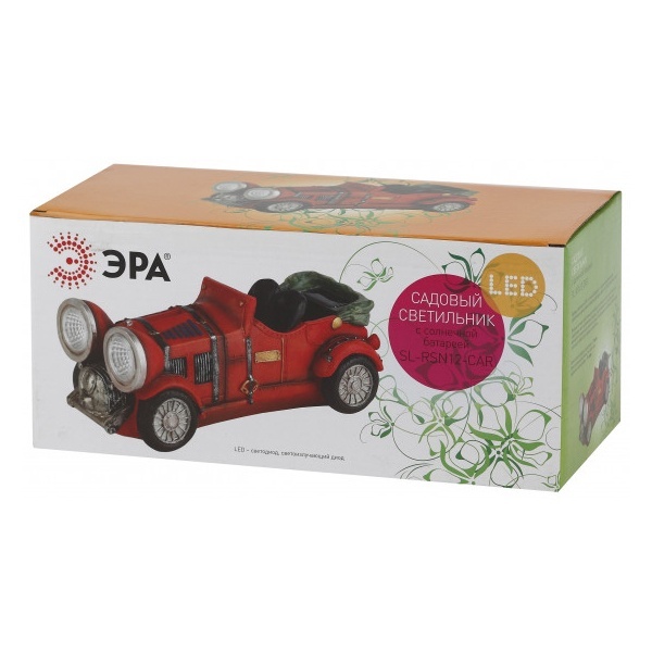 Наземный садовый светильник на солнечной батарее компании ERA серии SL выполнен в виде фигуры красного автомобиля с включенными фарами. Он пригодится для детских игр или для освещения сада. В дневное время суток светильник служит прекрасным украшением, оживляет пейзаж. Ночью он является декоративной подсветкой кустарника, газона, альпийской горки. Использование рефлектора в конструкции лампы обеспечивает высокую яркость свечения. В качестве осветительного элемента используются 2 белые светодиодные лампы. Декоративный светильник работает от аккумулятора, его заряда хватает на 8 часов непрерывной работы. Корпус светильника выполнен из искусственного камня полистоун. Прочная конструкция и влагонепроницаемый корпус обеспечивают светильнику длительный срок службы. Светильник рассчитан для применения на улице, он работает в любую погоду, степень защиты изделия – IP44. Светильник заряжается в течение всего светового дня, индикатор включается в темное время суток и выключается днем. Высота изделия – 12 см, вес – 0,9 кг. Гарантийный срок – 6 месяцев. Срок службы изделия – 2 года.