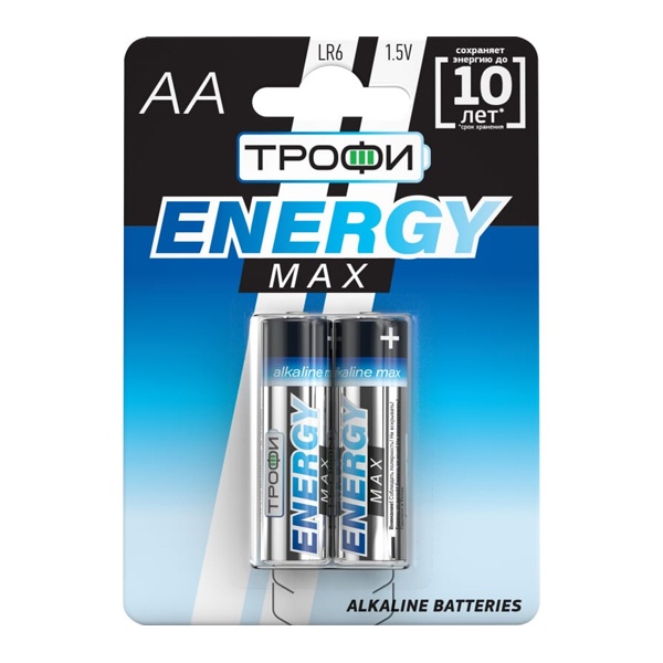 • Батарейка Трофи AA LR6 Energy Max Alkaline (упаковка 2 шт) 5055945540635