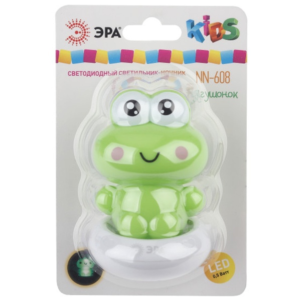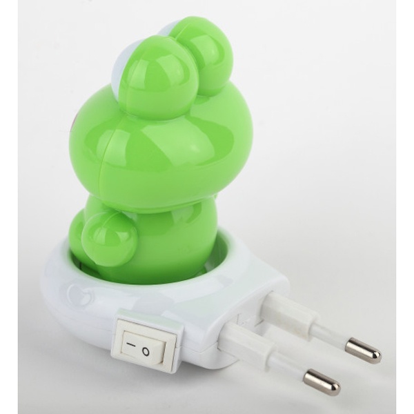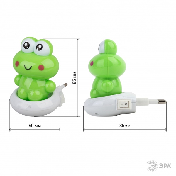Ночник "Лягушонок" со светодиодами в качестве источников света. С выключателем. Среди множества вариантов ночников миниатюрные модели, вставляющиеся в розетку - одни из самых удобных. Светодиодные ночники ЭРА успешно выполняют свою основную функцию - создают мягкий рассеянный свет. Они отличаются мизерным энергопотреблением, которое будет незаметно в общем счете за электроэнергию. При необходимости можно смело оставлять их включенными ночи напролет. Современная LED технология исключает пульсации света, освещение ровное и приглушенное - то, что нужно для комфортного сна или ночной подсветки.