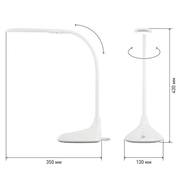 Белый светильник ЭРА NLED-452 настольного исполнения, сенсорным управлением 5ю уровнями яркости и изменением цветовой температуры, 48 светодиодов мощностью 9 Вт. Б0019128