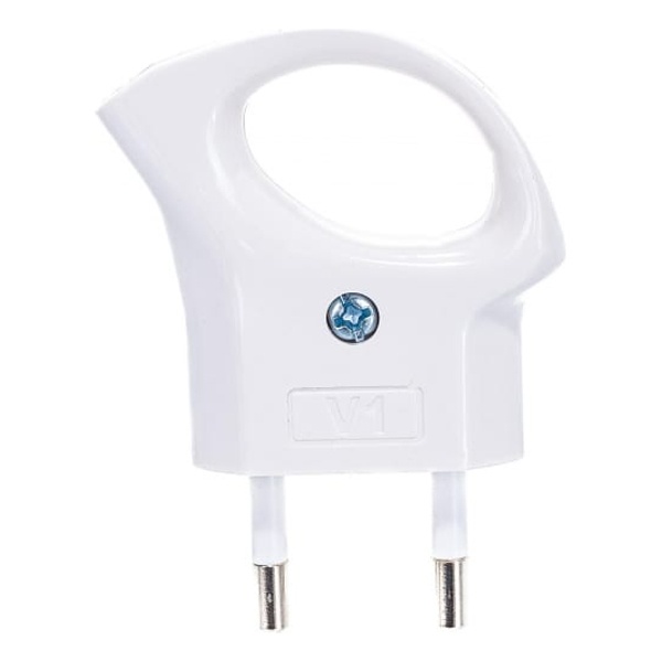 Вилка ЭРА V1 без заземления 6A с кольцом непрямой ввод белая