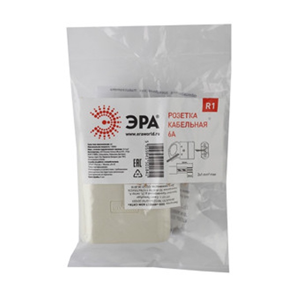Розетка кабельная R1 6А без заземл. с кольцом непрямой ввод (10/200/7200) бел. ЭРА Б0019183