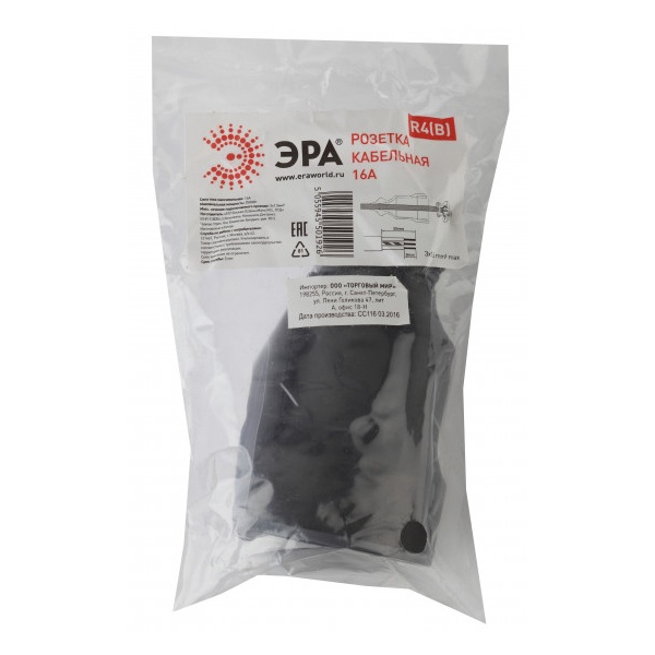 R4(B) ЭРА Розетка кабельная c/з 16A прямой ввод черная (10/200/4000)