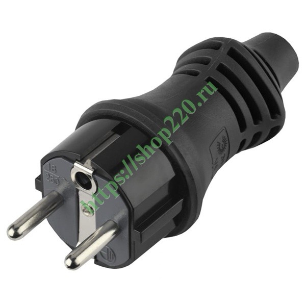 Вилка прямая каучуковая с заземлением IP44 16А 230 Вольт Эра Б0019193