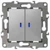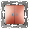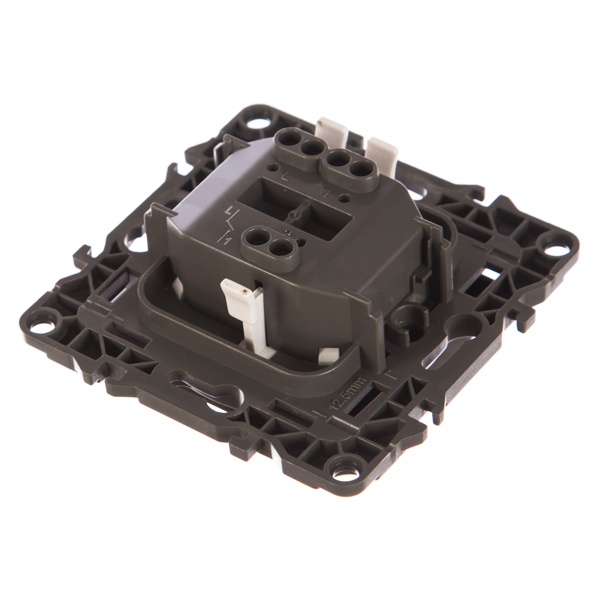 Выключатель идет с накладкой клавиш, изготовлены из негорючего пластика. Фиксация в монтажную коробку только на винты. Для хорошего контакта питания используется самозажимной механизм. Суппорт с пазами для ровного объединения механизмов. Контактная группа выполнена из сплава меди и серебра