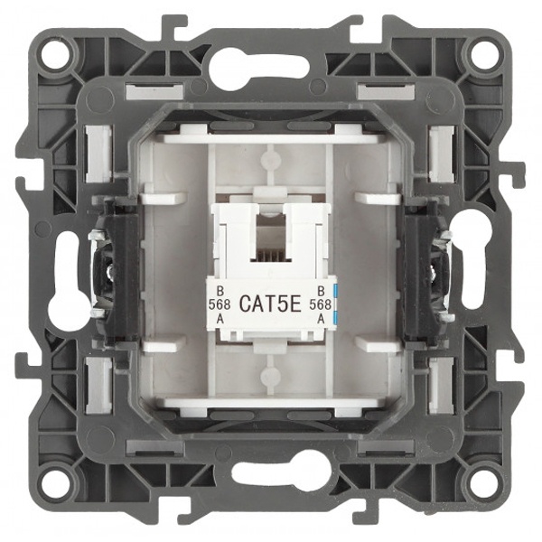 Розетка компьютерная(сетевая) с разъемом RJ45 категории 5е. Исполнение для скрытого монтажа в монтажные коробки на винты или монтажные лапки. С защитной крышкой на разъеме . Конструкция суппорта выполнена для ровного объединения механизмов по горизонтали и вертикали.