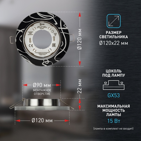 Светильники GX53 обычно имеют небольшие размеры, что позволяет им эффективно интегрироваться в интерьер помещения. Они могут быть установлены как в горизонтальные, так и в вертикальные поверхности, обеспечивая гибкость в планировании освещения.