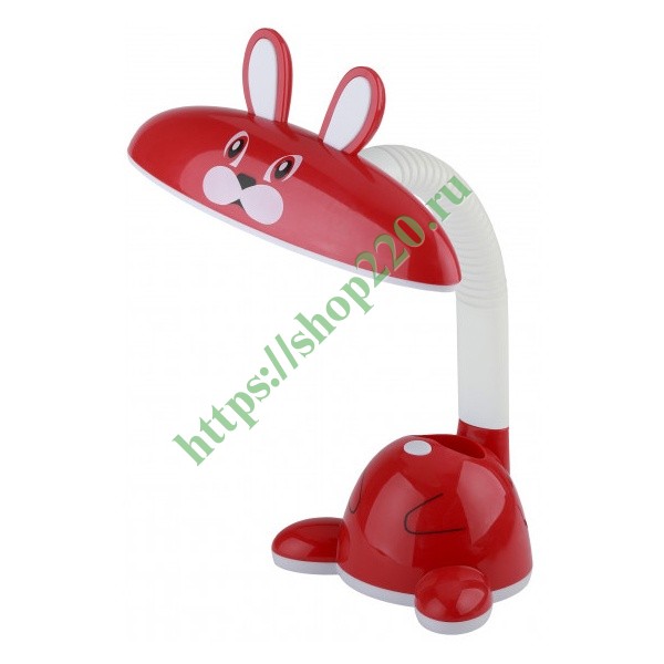 ЭРА NLED-431- настольный светильник для детей в виде забавного зайца: делать домашнее задание - это весело! Особенно актуален для первоклашек - с таким милым и веселым устройством они с первого учебного дня полюбят уроки. На основании светильника есть углубление-подставка для канцелярских принадлежностей. На рабочем столе теперь всегда порядок!