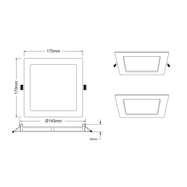 - Размер светильника: 169х169 мм