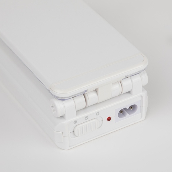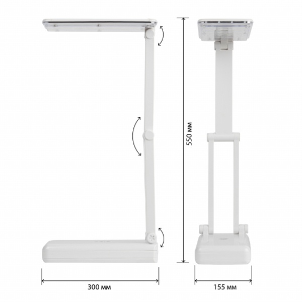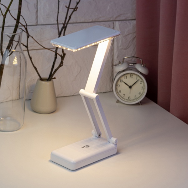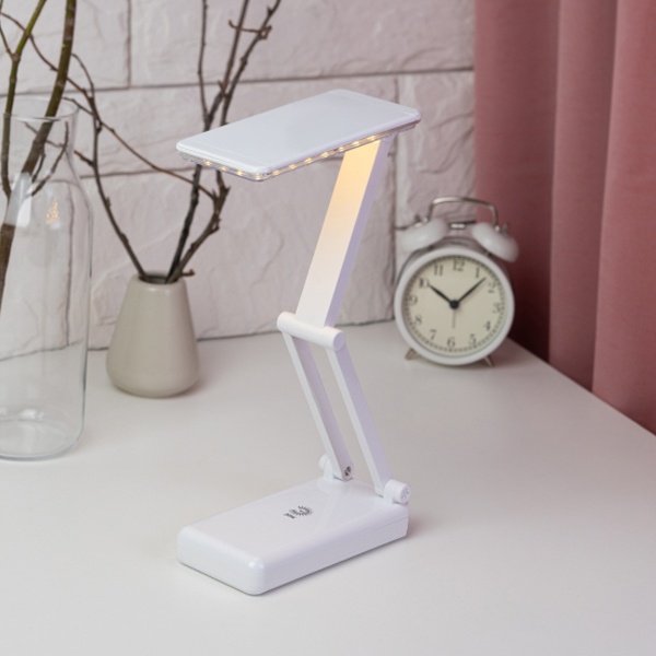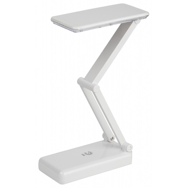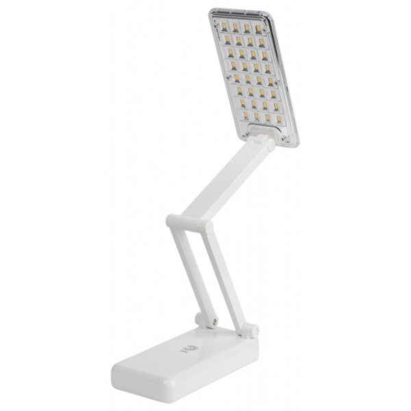Компактный складной настольный светильник белого цвета с 32 светодиодами мощностью 3 Вт, аккумуляторный с зарядкой от сети 220 Вольт и двумя режимами яркости. Б0020072