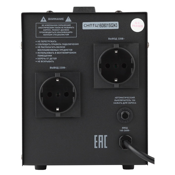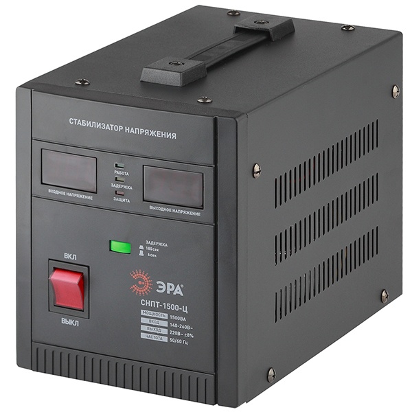 • Стабилизатор напряжения ЭРА СНПТ-1500-Ц 140-260В, 1.5кВА, цифровой дисплей