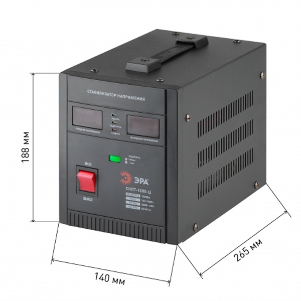 Стабилизатор напряжения ЭРА предназначен для поддержания стабильного однофазного напряжения питания нагрузок бытового назначения в пределах 220В?%, при отклонениях сетевого напряжения по значению и длительности в пределах от 140 до 260В.