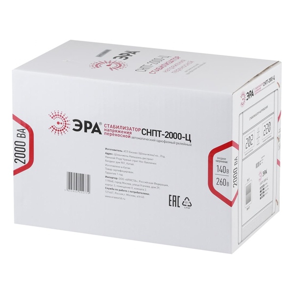 СНПТ-2000-Ц ЭРА Стабилизатор напряжения переносной, ц.д., 140-260В/220/В, 2000ВА (4/80)