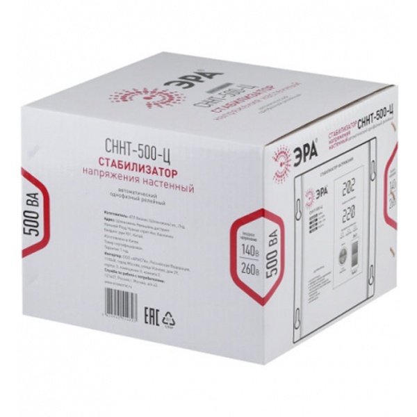 • Стабилизатор напряжения ЭРА СННТ-500-Ц 140-260В, 0.5кВА, цифровой дисплей