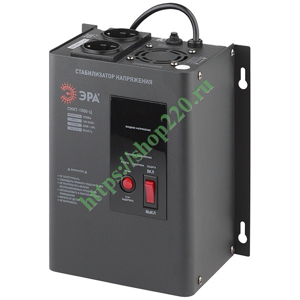 Автоматический однофазный стабилизатор напряжения ЭРА СННТ-1500-Ц, полная мощность 1500 ВА, с двумя розетками, настенного типа, цифровой индикатор Б0020167