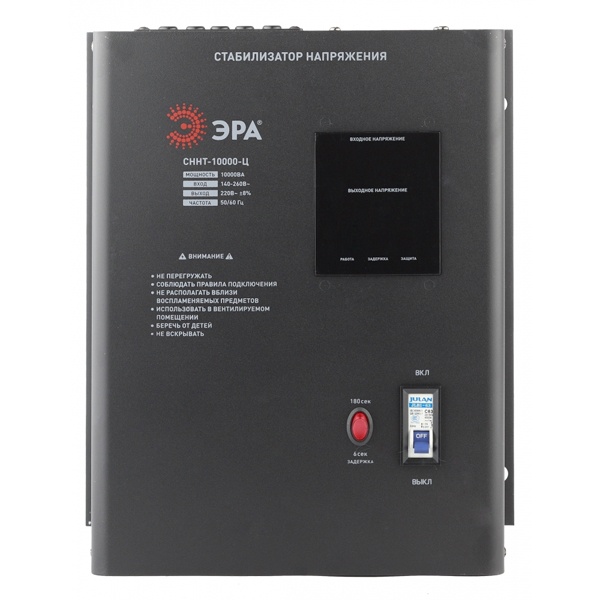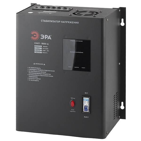 Автоматический однофазный стабилизатор напряжения ЭРА СННТ-8000-Ц, полная мощность 8000 ВА, подключение на входе: клеммы, подключение на выходе: клеммы, настенного типа, цифровой индикатор Б0020171