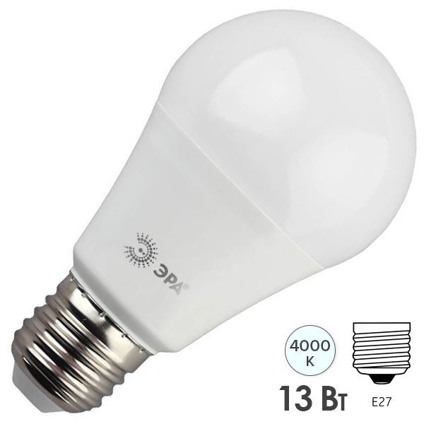 Лампа светодиодная груша ЭРА LED A60 13W 840 E27 холодный свет Б0020537