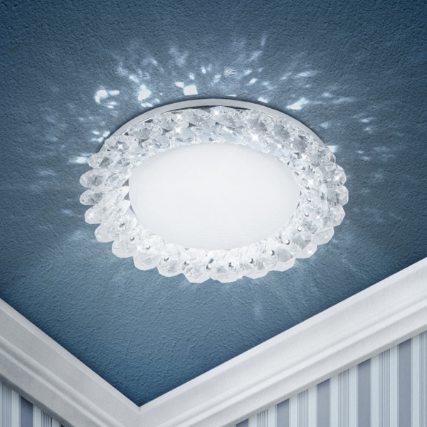 Встраиваемый светильник ЭРА DK84 под лампу с цоколем GX53 максимальной мощностью 13 Ватт, цвет хром/прозрачный хрусталь Б0020573