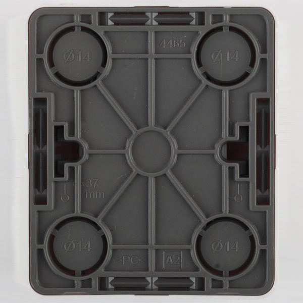 Монтаж изделий IP20 осуществляется на поверхность при помощи саморезов. На задней стенке предусмотрены необходимые перфорации для подвода кабеля. Или через боковые стенки с намечеными контурами отверстий под разный диаметр кабеля.