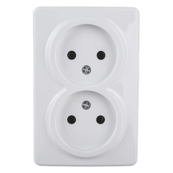 Электрическая внешняя белая розетка двойная силовая 16А электросети 220В IP20 открытой установки на стену Б0020682