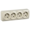 Электрическая внешняя бежевая розетка четверная силовая 16А электросети 220В IP20 открытой установки на стену Б0020707
