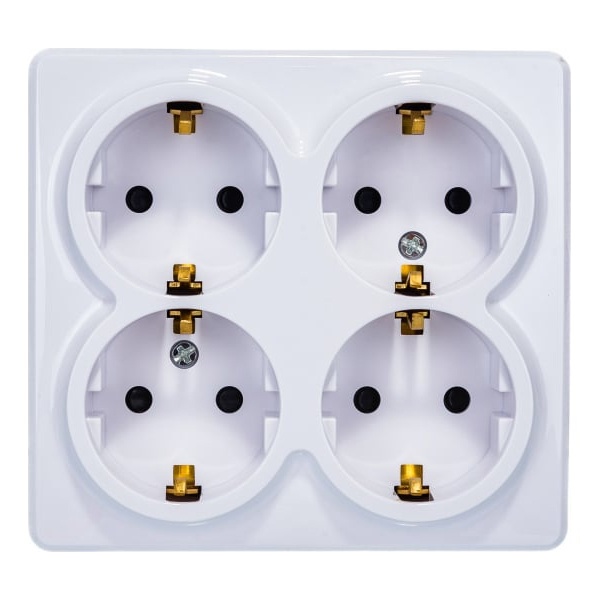Электрическая внешняя белая розетка четверная силовая 16А электросети 220В IP20 открытой установки на стену Б0020709
