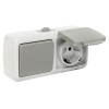 Влагозащищеная (IP54) двойная розетка с заземлением и защитной крышкой Эра серии Эксперт накладного исполнения 16 ампер на 230 Вольт, цвет серый Б0020717