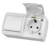 Влагозащищенный блок розетки с заземлением и крышкой и выключателем с одной клавишей серии Эра Эксперт предназначен для наружного монтажа, имеет белый цвет. Его номинальные характеристики соответствуют стандарту IP54. Корпус выключателя изготовлен из высококачественного поликарбоната. Устройство оснащено уникальными винтовыми клеммами ЭКСПЕРТ, предназначенными для обеспечения максимально надежного зажима кабеля в механизме.