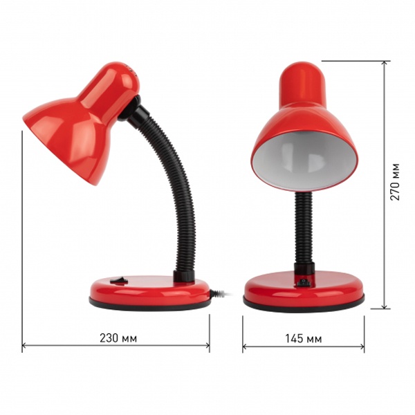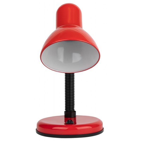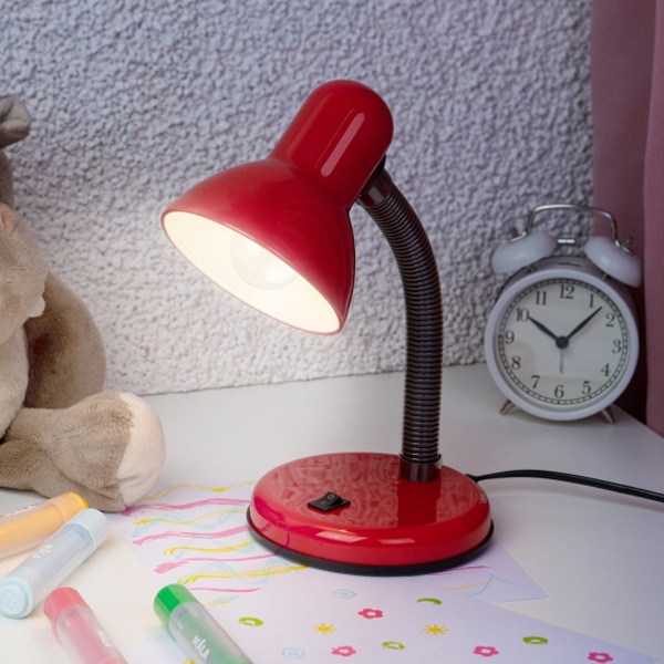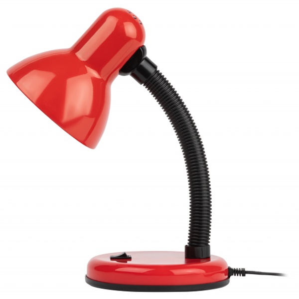 Настольная лампа с гибкой стойкой, в металлическом корпусе красного цвета , под лампу (ЛОН, КЛЛ, LED) с цоколем Е27. Б0022332