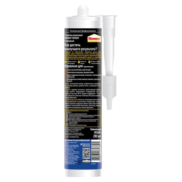 Высококачественный Силиконовый Санитарный герметик Момент Гермент идеален для герметизации и заполнения швов и стыков в помещениях с повышенной влажностью.