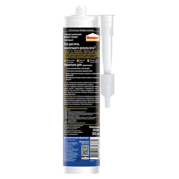 Высококачественный Силиконовый Санитарный герметик Момент Гермент идеален для герметизации и заполнения швов и стыков в помещениях с повышенной влажностью.