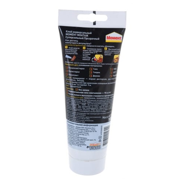 Момент Монтаж Суперсильный МВп-70 прозрачный обладает высокой начальной силой склеивания (70 кг/м2) и отлично подходит для различных ремонтных работ.
