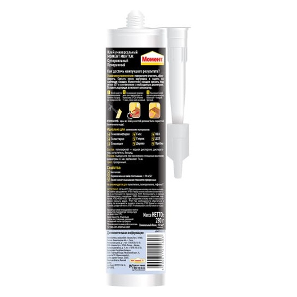 Момент Монтаж Суперсильный МВп-70 прозрачный обладает высокой начальной силой склеивания (70 кг/м2) и отлично подходит для различных ремонтных работ.