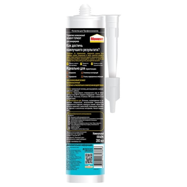 Герметик силиконовый для аквариумов Момент Гермент - 100 % силиконовый герметик для герметизации аквариумов, террариумов и других стеклянных конструкций.