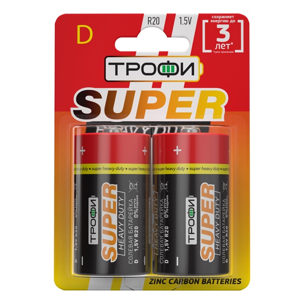 Элемент питания солевой D/R20-2BL (блист.2шт) Трофи Б0023143