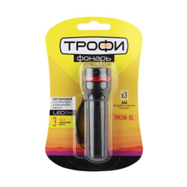 Трофи TM3W - компактный светодиодный фонарь со встроенным коллиматором. Высокая дальность светового луча и повышенный световой поток. Прочный алюминиевый корпус. Простота в использовании. Встроенная коллиматорная линза улучшает все световые характеристики данного фонаря. Это уже не стандартный ручной фонарик, а усовершенствованная модель с высокой дальностью луча (250 метров) и повышенным световым потоком (216 люменов). При своих компактных размерах и простоте в использовании Трофи TM3W даёт практически профессиональное освещение высокого качества. Он станет надёжным помощником в дороге, на охоте и рыбалке. Всегда можно брать с собой благодаря удобному ремешку для переноса на запястье. Корпус изготовлен из прочного алюминия, при этом фонарь не выскальзывает из рук за счёт рифлёного покрытия рукоятки. Работает от 3 мизинчиковых батареек (ААА) в течение 3 активных часов. И выглядит очень аккуратно и стильно за счёт лаконичного дизайна, базового чёрного цвета и яркого красного ободка.