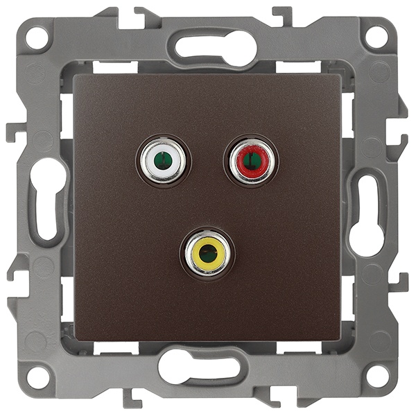 Аудио-видео розетка с тремя разъемами RCA для скрытой установки в сухих помещениях, цвет накладки бронза, Эра 12. Б0027478