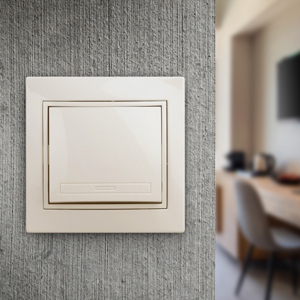 Одноклавишный выключатель бежевого цвета для скрытой установки в сухих помещениях, Intro серии Plano. Б0027596