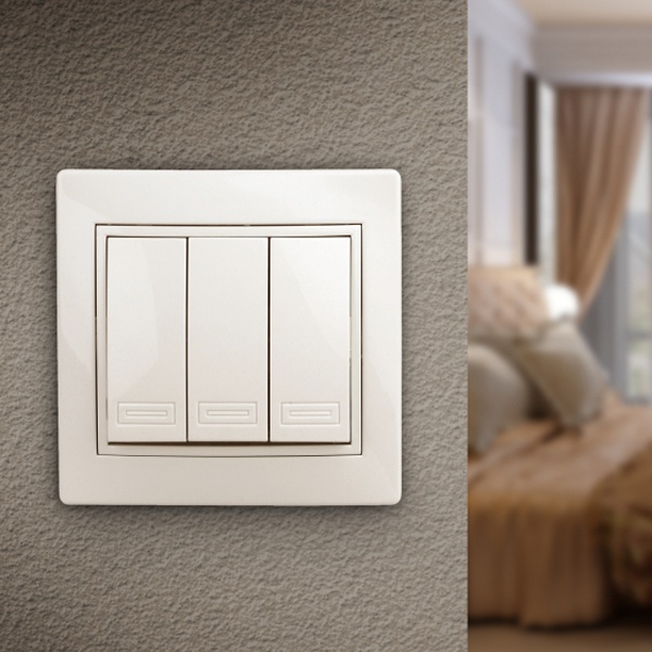 Трехклавишный выключатель бежевого цвета для скрытой установки в сухих помещениях, Intro серии Plano. Б0027606