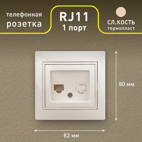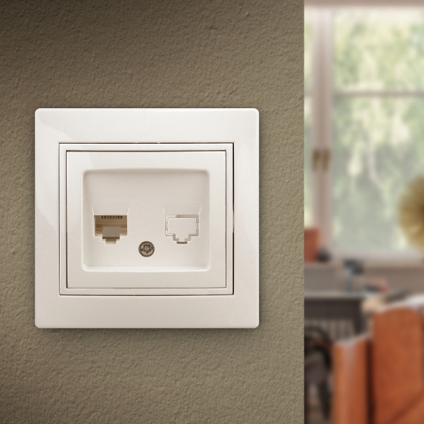 Розетка телефонная с одним разъемом RJ11 для скрытой установки в монтажные коробки на распорные лапки, либо винты. Накладка и рамка выполнены из негорючего пластика без содержания галогенов.