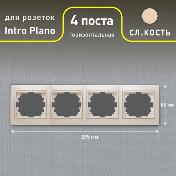 Декоративная рамка изготовлена из негорючего пластика с перегородками на 4 электроустановочных изделия Intro серии Plano. Горизонтальной установки, бежевого цвета, размером 80*295*8мм.
