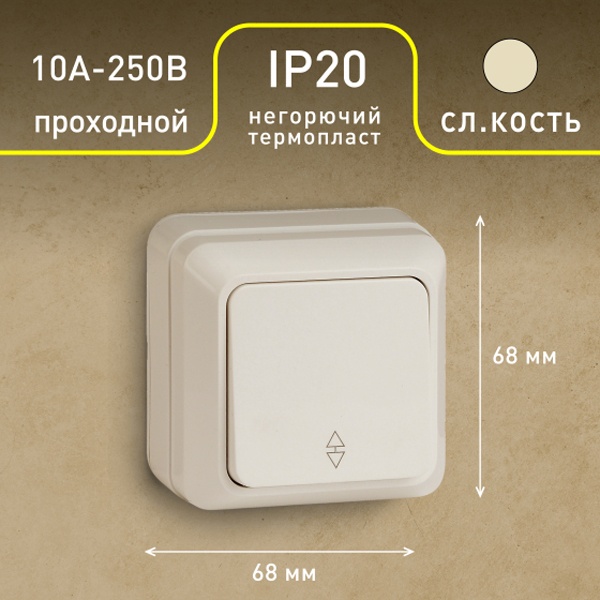 2-103-02 Intro Переключатель, 10А-250В, IP20, ОУ, Quadro, сл.кость (10/200/3600)
