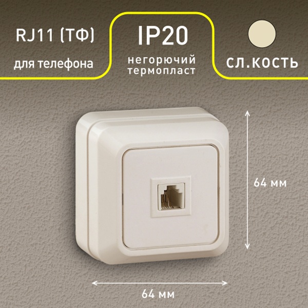 2-302-02 Intro Розетка телефонная RJ11, IP20, ОУ, Quadro, сл.кость (10/200/1600)
