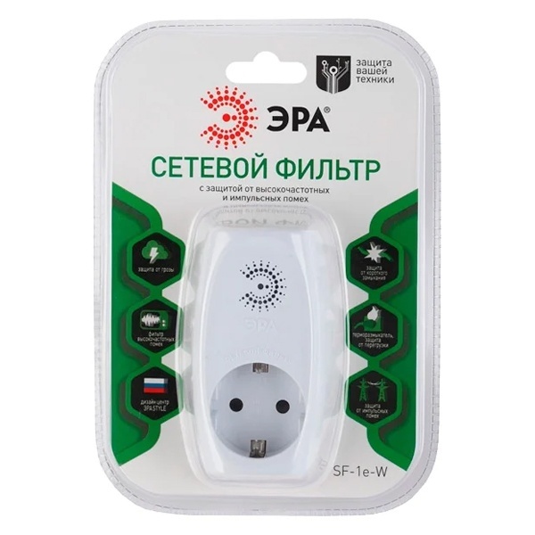 Сетевой фильтр ЭРА SF-1e-W с максимальной защитой с заземлением 1 розетка 16 А белый