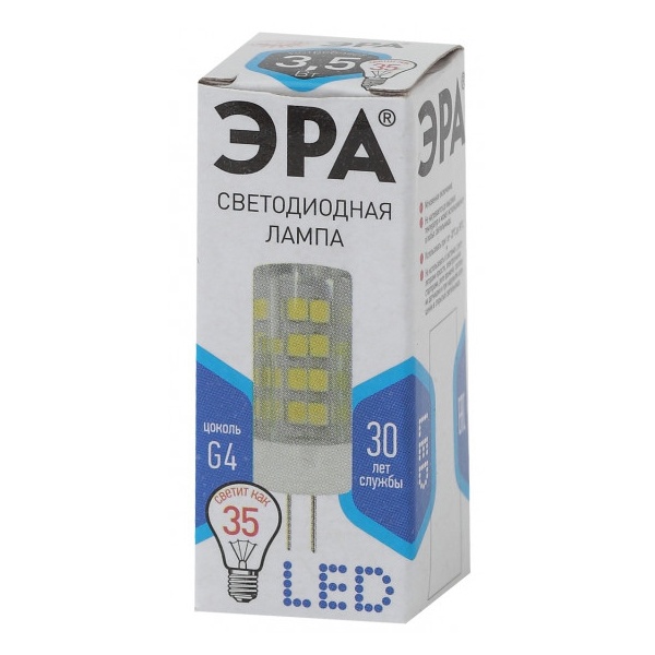 • Лампа светодиодная ЭРА LED JC-3,5W-220V-CER-840-G4 керамика холодный свет