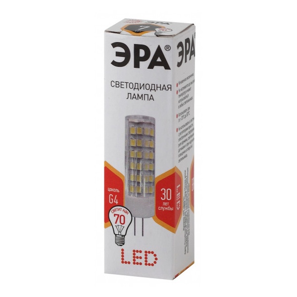 Лампочка светодиодная ЭРА STD LED JC-7W-220V-CER-827-G4 G4 7Вт керамика капсула теплый белый свет